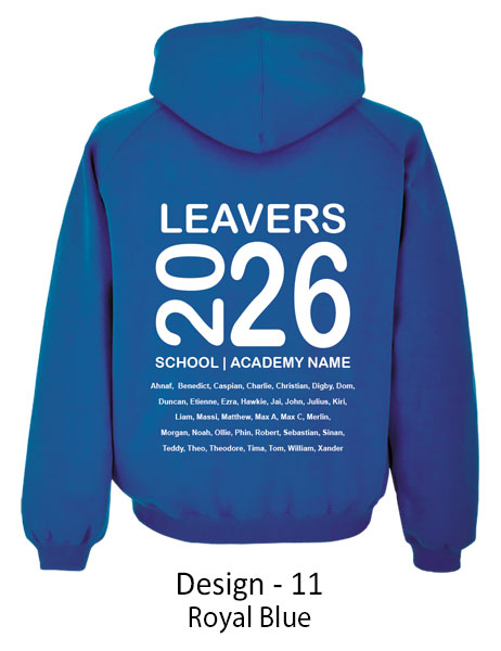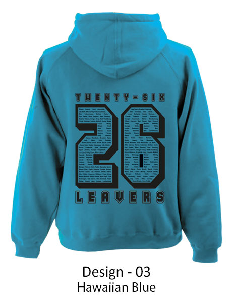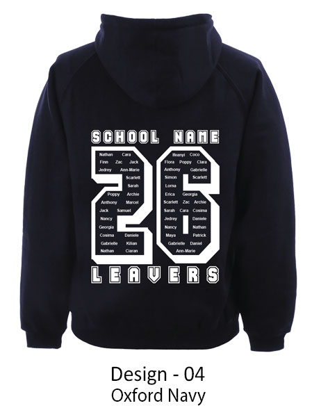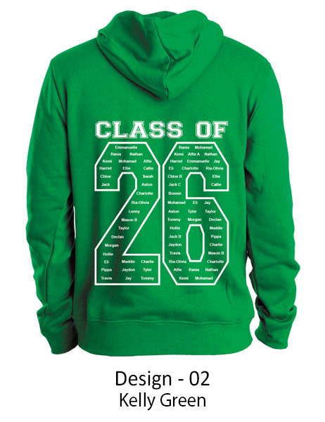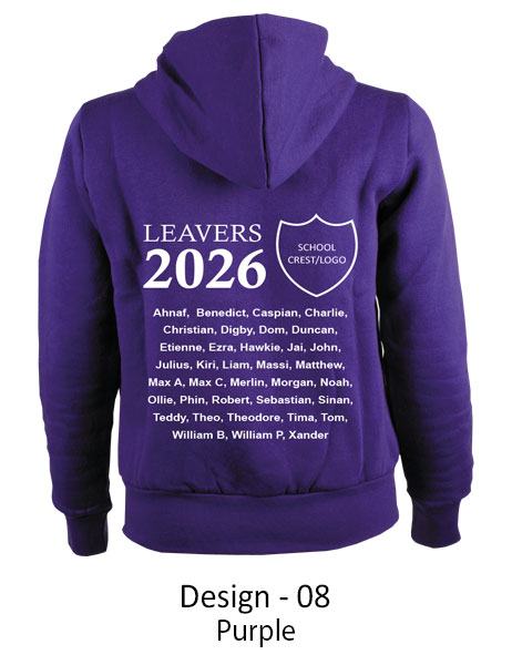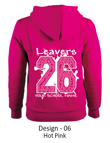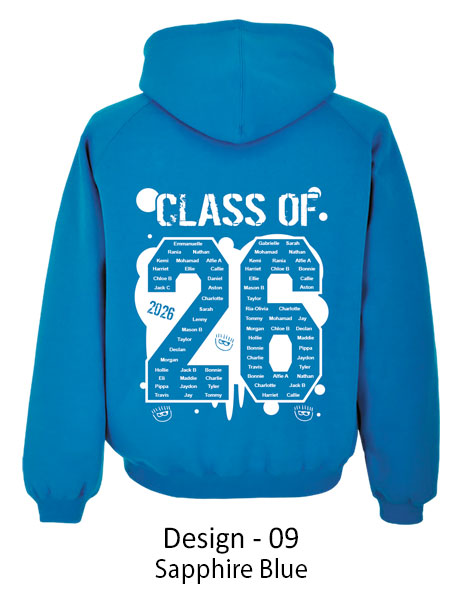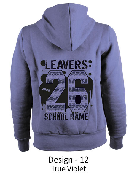 Our 2026 school leaver zoodie designs are shown below. Zoodies are printed in black or white depending on the individual zoodie colour chosen. To view a larger image click on any design below.