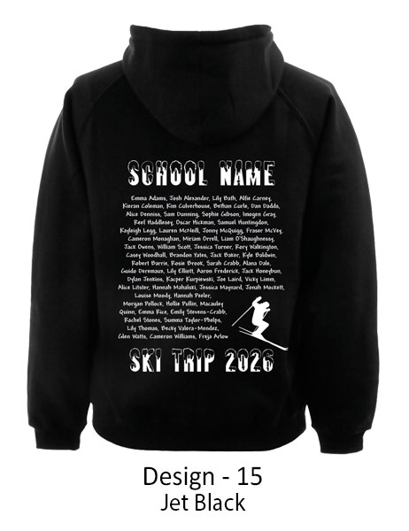 Add your school logo or other graphic to the front left or right chest of your hoodies to look extra smart. You can choose either a printed or embroidered logo: Printed logo add £5.00 extra per hoodie. Embroidered logo add £6.00 extra per hoodie.